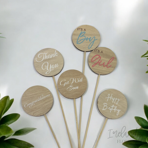 GiftwareEnhance your floral arrangements with our round timber picks, a simple yet elegant way to convey heartfelt messages of thanks, congratulations, hap...